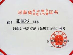 张瀛岑董事长荣膺河南省劳动模范称号